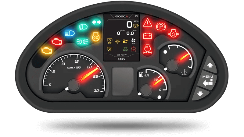 Modern gösterge paneli, analog enstrümanları renkli dijital ekran ile entegre ederek traktörün durumunun tam kontrolünü sağlar.