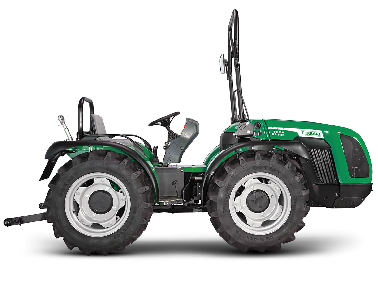 Thor 85 AR, bağlar, meyve bahçeleri, seralar ve fidanlıklar gibi özel tarım alanlarının dar çalışma koşulları için tasarlanmış kompakt bir izodiyametrik traktördür.